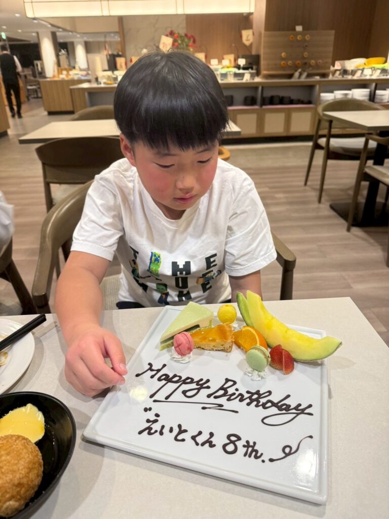 こどもの誕生日をお願いしたので、レストランではデザートプレートを用意していただき、歌を歌っていただけました。